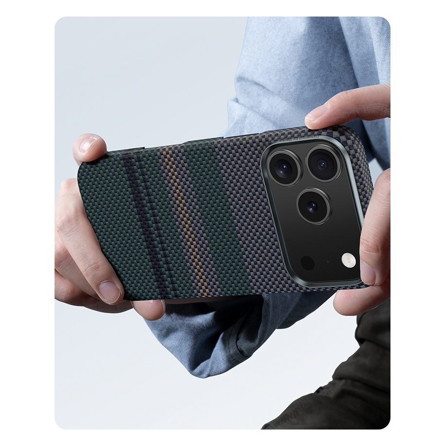 Чохол виконаний у темно-зеленій палітрі з фіолетовими та оранжевими акцентами, що створюють гармонійний сучасний дизайн. Тонкий (лише 1.2 мм) і легкий завдяки Air-технології, він майже непомітний у використанні, забезпечуючи комфортні тактильні відчуття. Металевий блок захисту для камери гарантує надійність, поєднуючи стильний вигляд із практичністю.