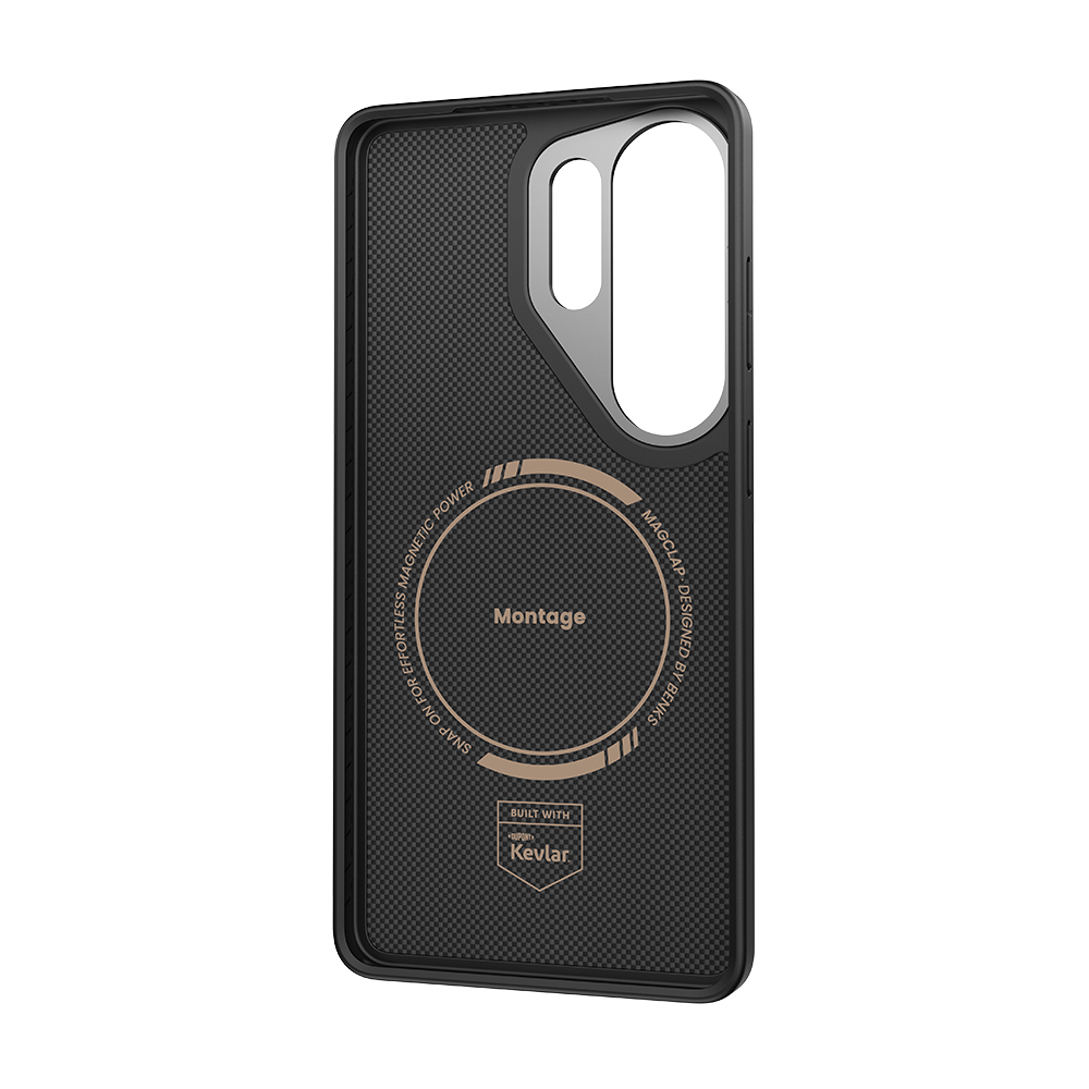 Чохол ArmorPro Montage виконаний у лаконічній чорній гамі з преміальною Kevlar-текстурою, яка не лише виглядає стильно, а й забезпечує надзвичайну міцність. Завдяки товщині лише 1,4 мм та легкій конструкції він майже непомітний у щоденному використанні, водночас захищаючи кути та камеру завдяки металевому блоку та посиленим граням. Поєднання матеріалів Kevlar Fiber, алюмінієвого сплаву, TPU і PC гарантує витривалість та амортизацію ударів, а вбудовані магніти забезпечують зручну сумісність із зарядками MagSafe і бездротовими аксесуарами.