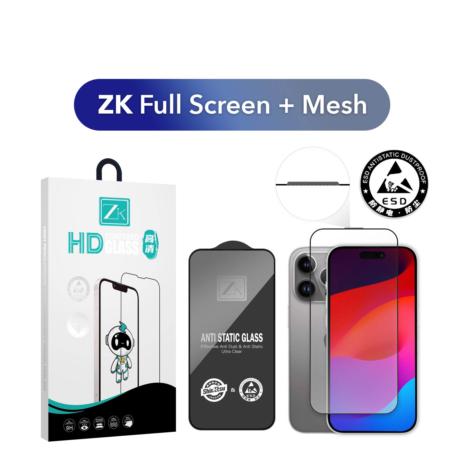 Захисне скло ZK для iPhone 15 Pro Max 2.5D Full Screen